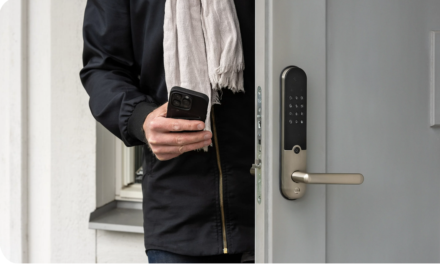 Su YALE Doorman L3 raktai jums nebereikalingi. Grįžtate po rytinio bėgimo? Įrenginys atpažįsta jūsų lokaciją ir atrakina duris – jums tereikia paspausti rankeną ir jūs jau namuose. Tai neįtikėtinai paprasta ir patogu!