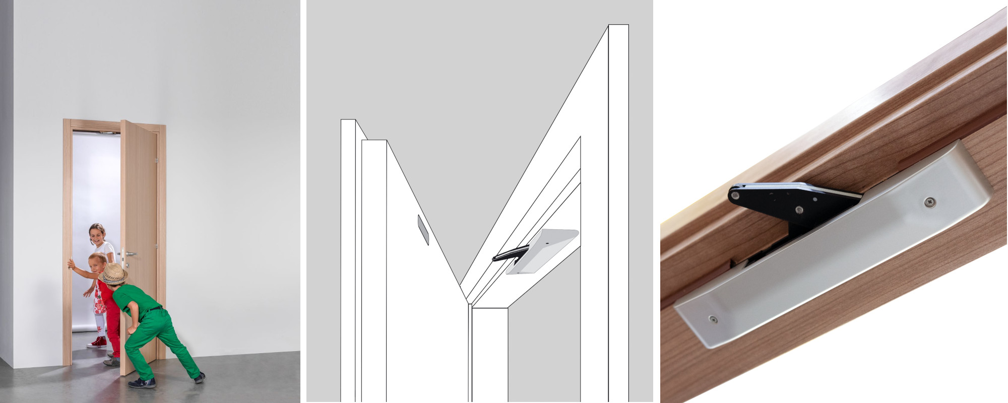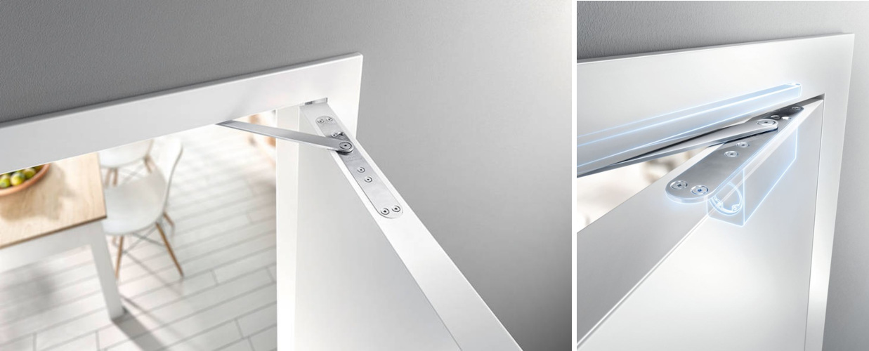 - įtaisas gali būti montuojamas ant durų paviršiaus arba įleidžiamas į jas.