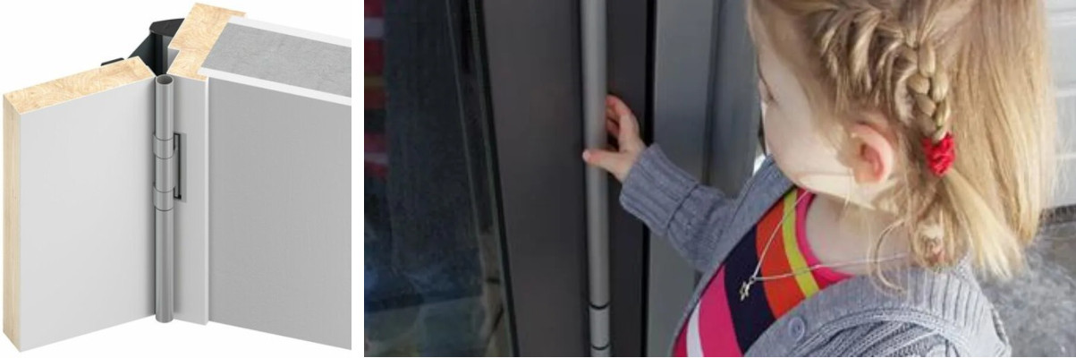 Pirštų apsauga vyrių pusėje