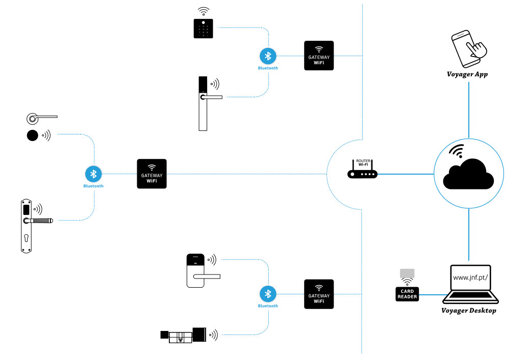 Voyager – tai patogus durų valdymo sprendimas, sukurtas portugalų furnitūros gamintojo JNF. Jį lengva pritaikyti bet kokioje aplinkoje – bute, biure, viešbutyje ar viešoje įstaigoje. Voyager siūlo kelis modernius sprendimus, leidžiančius rinktis tarp autonominio arba centralizuoto valdymo.