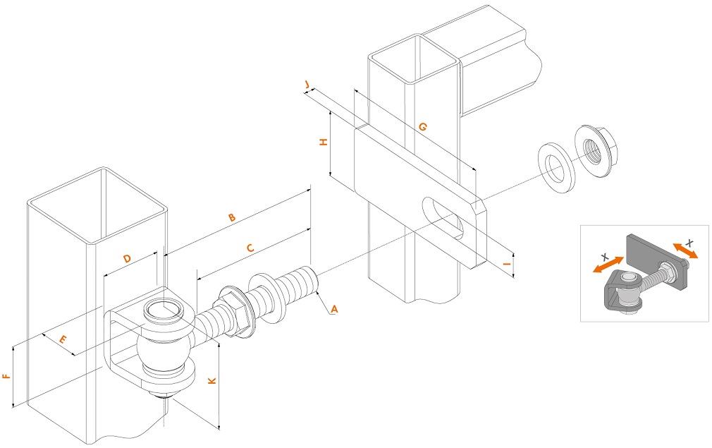 | Vyrių tipas | Keliamoji galia (kg) | A | B (mm) | C (mm) | D ( mm) | E (mm) | F ( mm) | G (mm) | H (mm) | I ( mm) | J (mm) | K (mm) |
