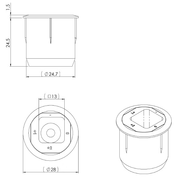 - korpuso Ø: 17,5 mm, krašto Ø: 19 mm
