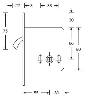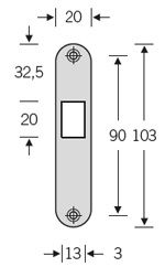 - Nerūdijančio plieno galinė plokštelė: 103 x 20 mm (įeina į spynos komplektą)
