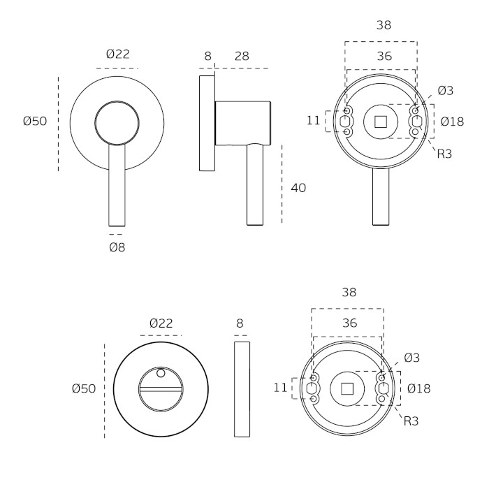- SM.036 Prisukamas WC užraktas, skirtas stumdomoms panelinėms durims. Komplektuojama su priešpriešine plokštele SM.038 ir WC rozetėmis su pailgintu kamščiu IN.04.110.