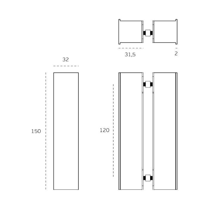- aliumininis bėgis 2900 mm, galima sutrumpinti
