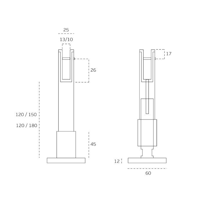 - grindyse montuojamos įstrižos arba cilindrinės reguliuojamo aukščio pertvarų atramos