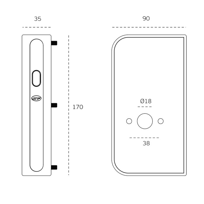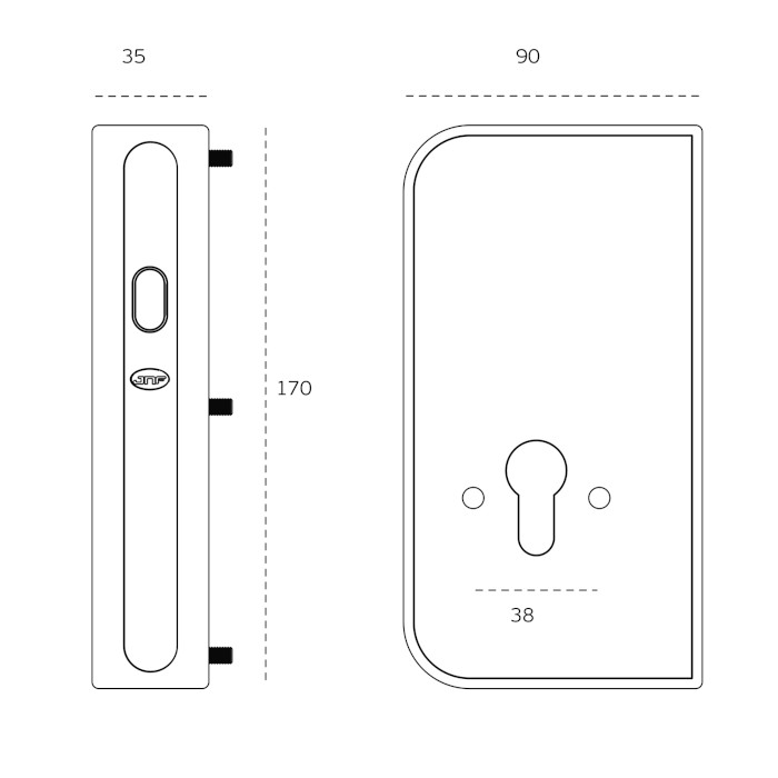 - SM.037 Prisukamas PZ užraktas, skirtas stumdomoms panelinėms durims. Skirta eurostandartinio profilio cilindrams. Pridedama priešplokštė.