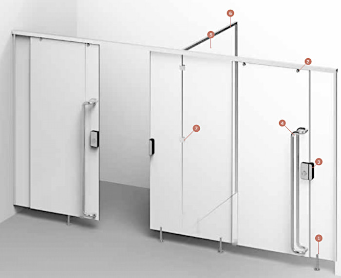 Sanitarinių kabinų furnitūros sistema SM PB stumdomoms durims