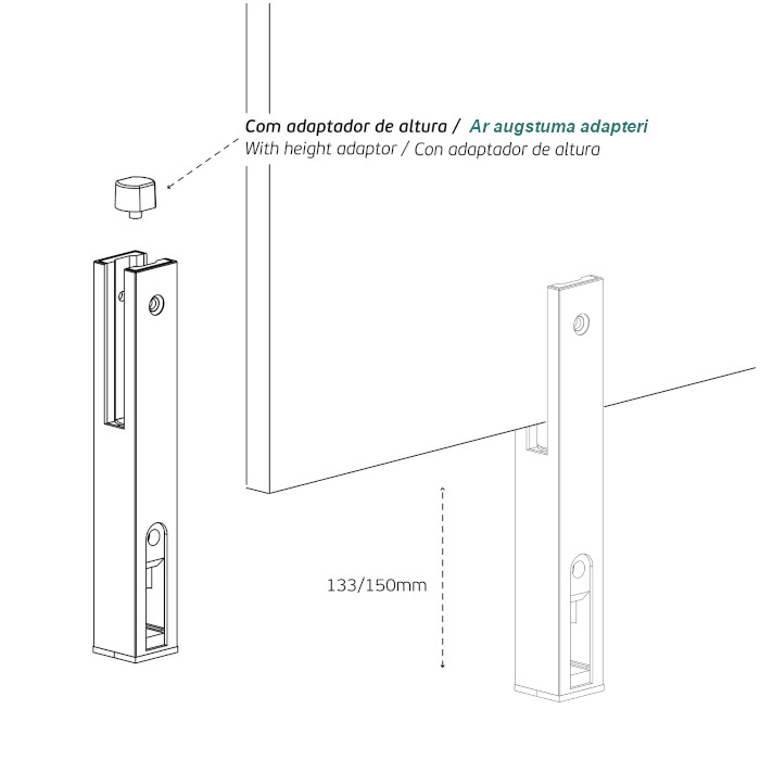 - aukštis gali būti reguliuojamas ir po sumontavimo
