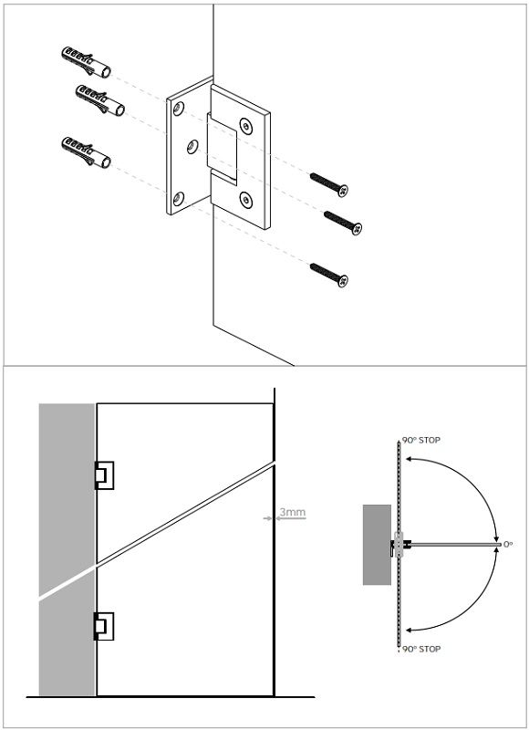 - atidarymo kampas: 90°/90°