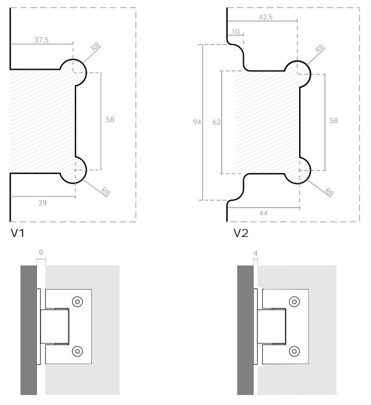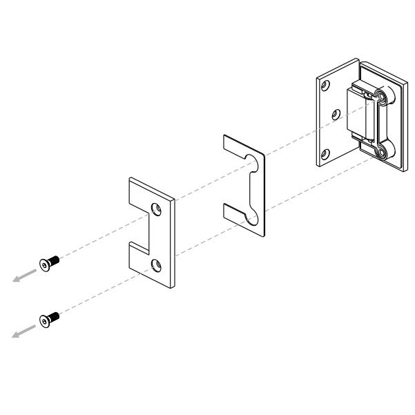 - varstomasis vyris su įlaidu, skirtas 8-10 mm storio pilnavidurių stiklo durims
