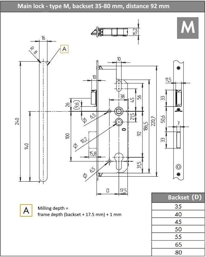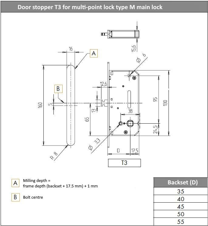 - strike plate adjustment range: 5 mm