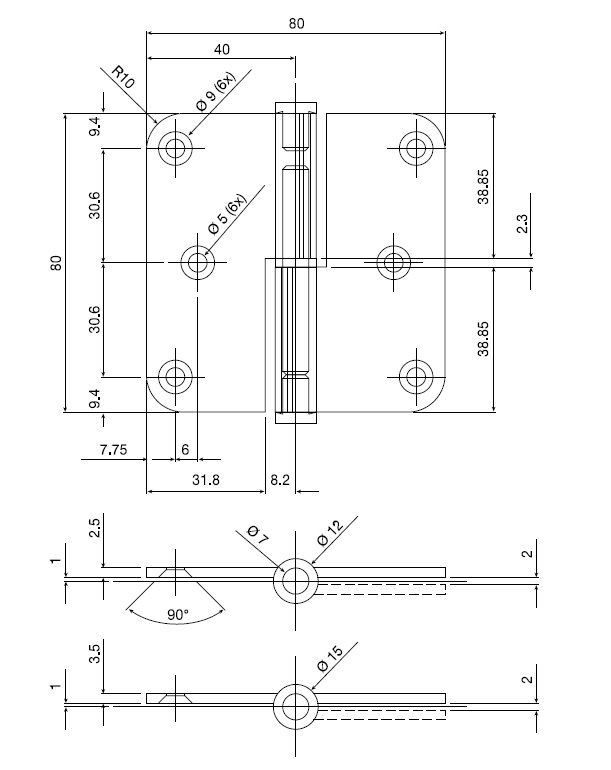 - hinge height: 80 mm