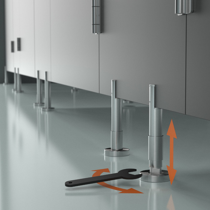 - cylindrical un square panel feet with height agjusting system