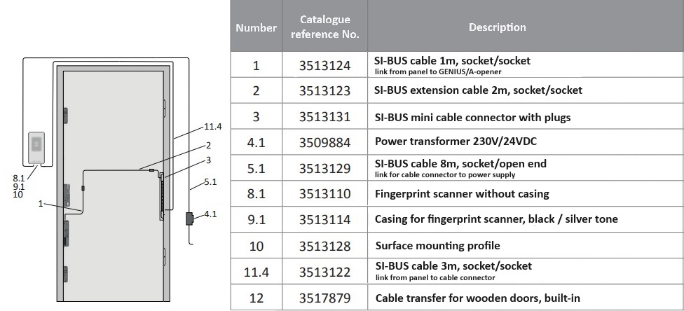SI-BUS access control system with surface fingerprint scanner and Plug&Play solution for wooden doors